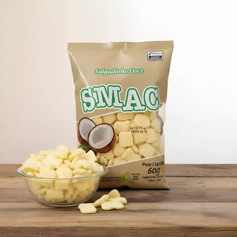 Não perca a chance de levar para casa esse sabor tropical que está conquistando o Brasil! Garanta já o seu Kit Salgadinho Doce Coco SMAC e transforme seus momentos com um toque doce e crocante que vai surpreender você.